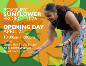 Join the Roxbury Sunflower Project for the kickoff of its 9th season. This free, family-friendly event includes sunflower seed and seedling giveaways, kids' gardening kits, and art activities with SPARC! The ArtMobile, and more. Celebrate community, creativity, and growing together.