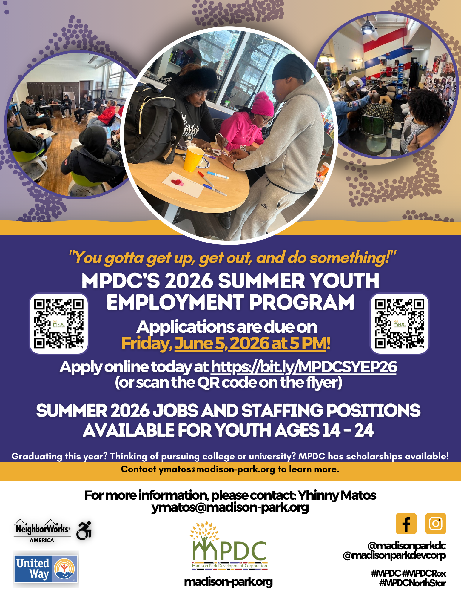 Get a head start on your summer ‘A’ game and sign up to receive our latest (SYEP) summer program application, soon to come out!
